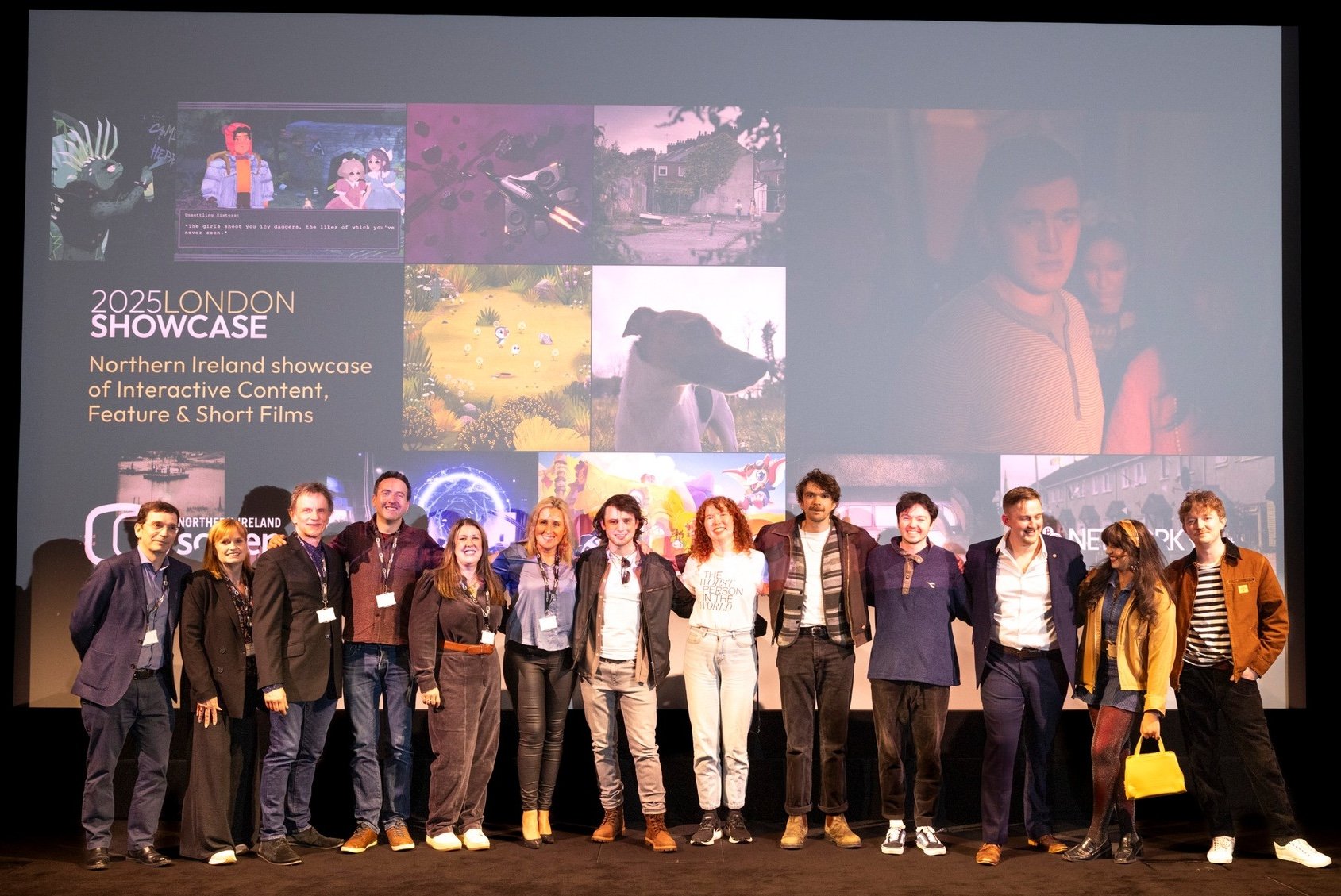 ‘Housejackers’ cast and crew along with Northern Ireland Screen executives. David and Brian, 3rd and 4th from the left.